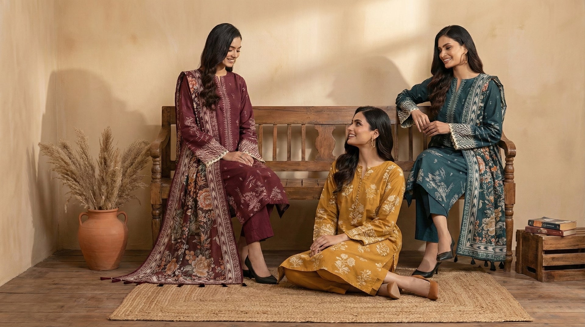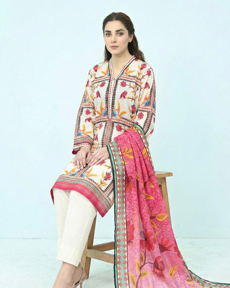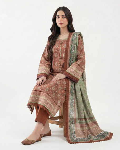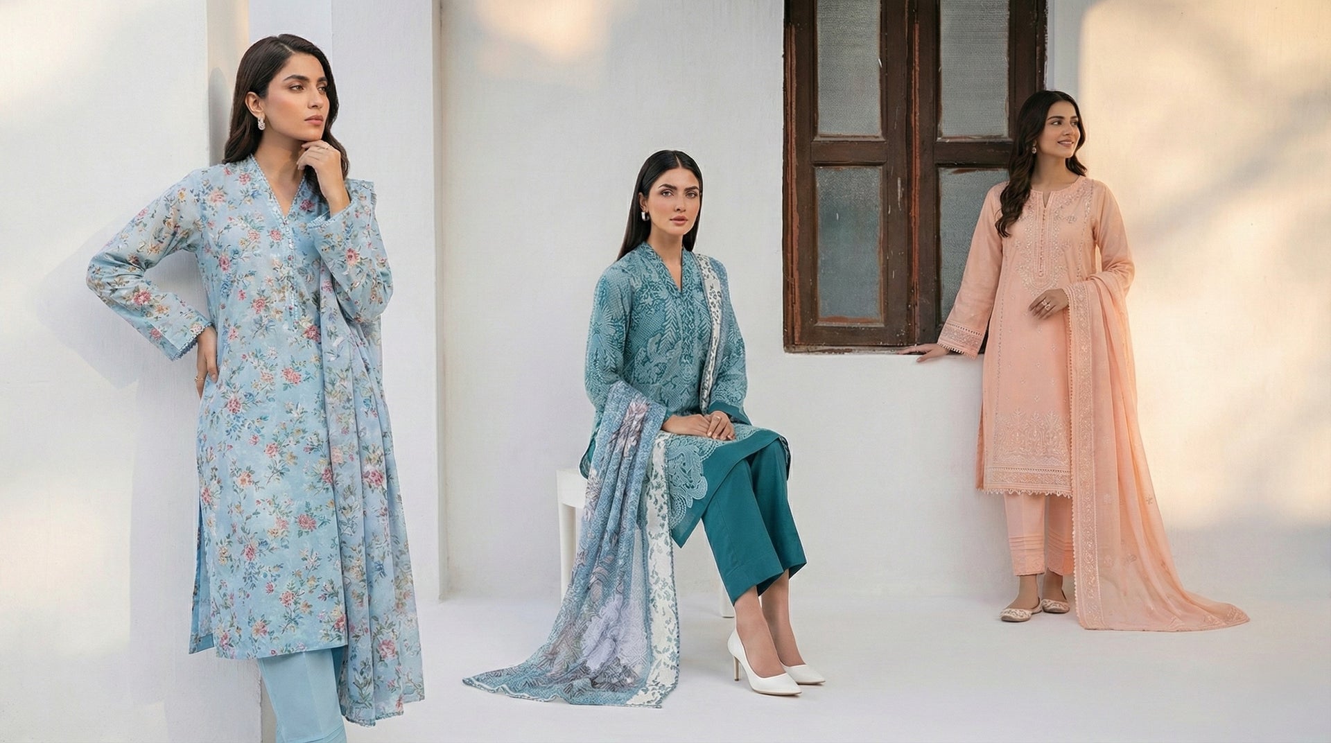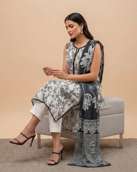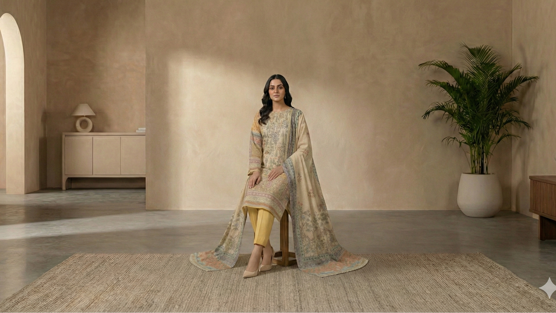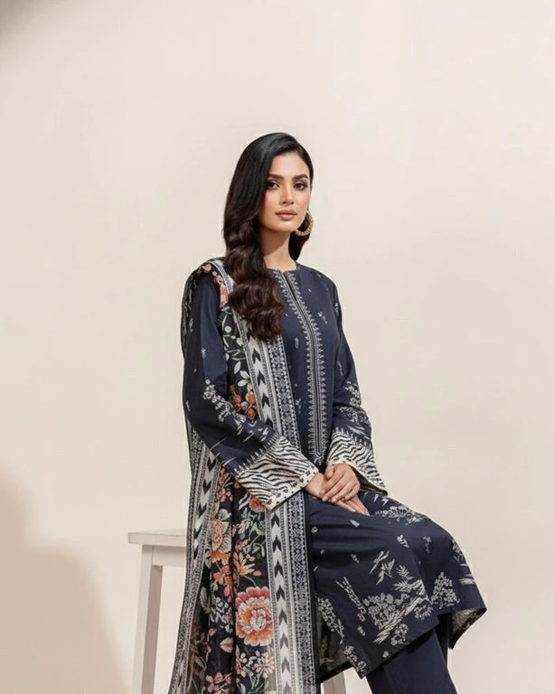 A standard 3-piece suit typically includes the Shirt (Kameez) fabric, Trouser (Shalwar) fabric, and a Dupatta. Please check the specific product description for the exact yardage details.